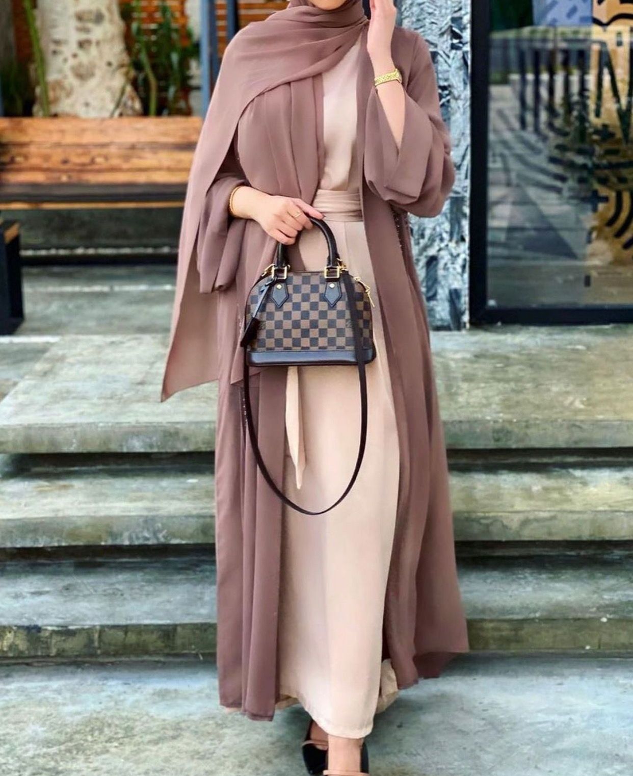 Be the first to review “Plain Abaya with Belt and Large Sleeves Light Brown Color with Dupatta in Firdous Material”